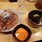 이번에 오사카 먹부림 하면서 한끼를 제외하면 아침은 꼭 츠루동탄 소에몬초점에서 우동으로 때웠는데. 여기는 11시에 오픈해서 다음날 아침 8시까지 하는데라 새벽에 가면 웨이팅없이 먹을만 하다. 그외 시간은 웨이팅이 좀 많다고 한다. 게다가 우동이 국물음식이라 아침으로 먹어도 먹을만 하고 전부터 가본다 하다가 간 거라 혼자서 모든메뉴를 먹어볼 수 없기에 아침당 1개씩 메뉴 를 바꿔가면서 주문해서 먹엇다. 대표적인 메뉴는 기츠네 우동 , 스끼야끼 우동 , 명란크림 우동 , 카레 우동 이 있으나. 체류 기간 문제로 카레우동은 못먹어봤다. ㅠ.ㅠ 스끼야끼 우동 간장베이스 불고기 국물같은거에 우리가 잘아는 스끼야끼 토핑되어 나옴 가운데 반숙 계란을 톡터트려 저기에고기를 찍어먹으니 개꿀맛. 짜지도 않고 맛있는 불고기..